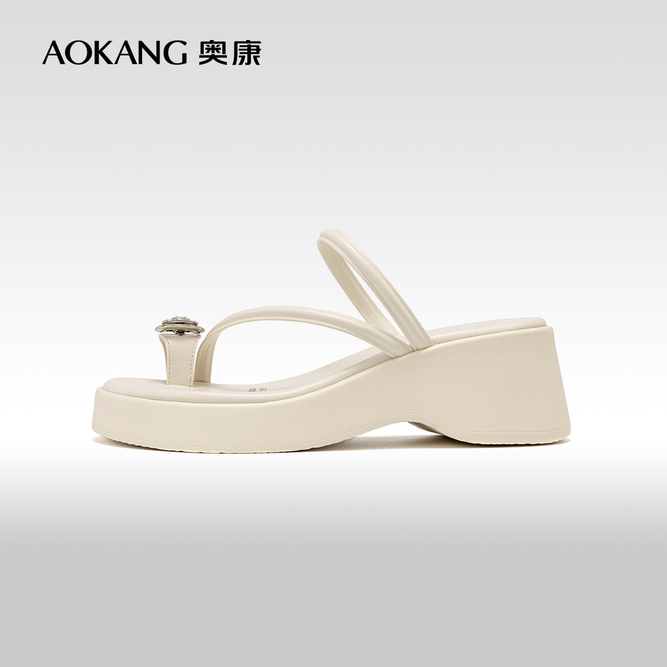 奥康女鞋 夏季新款简约厚底水钻套指凉拖鞋优雅甜美显高凉鞋