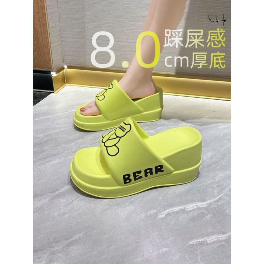 宋雨琦明星同款棕色厚底沙滩一字拖鞋女夏季外穿度假风增高凉拖鞋