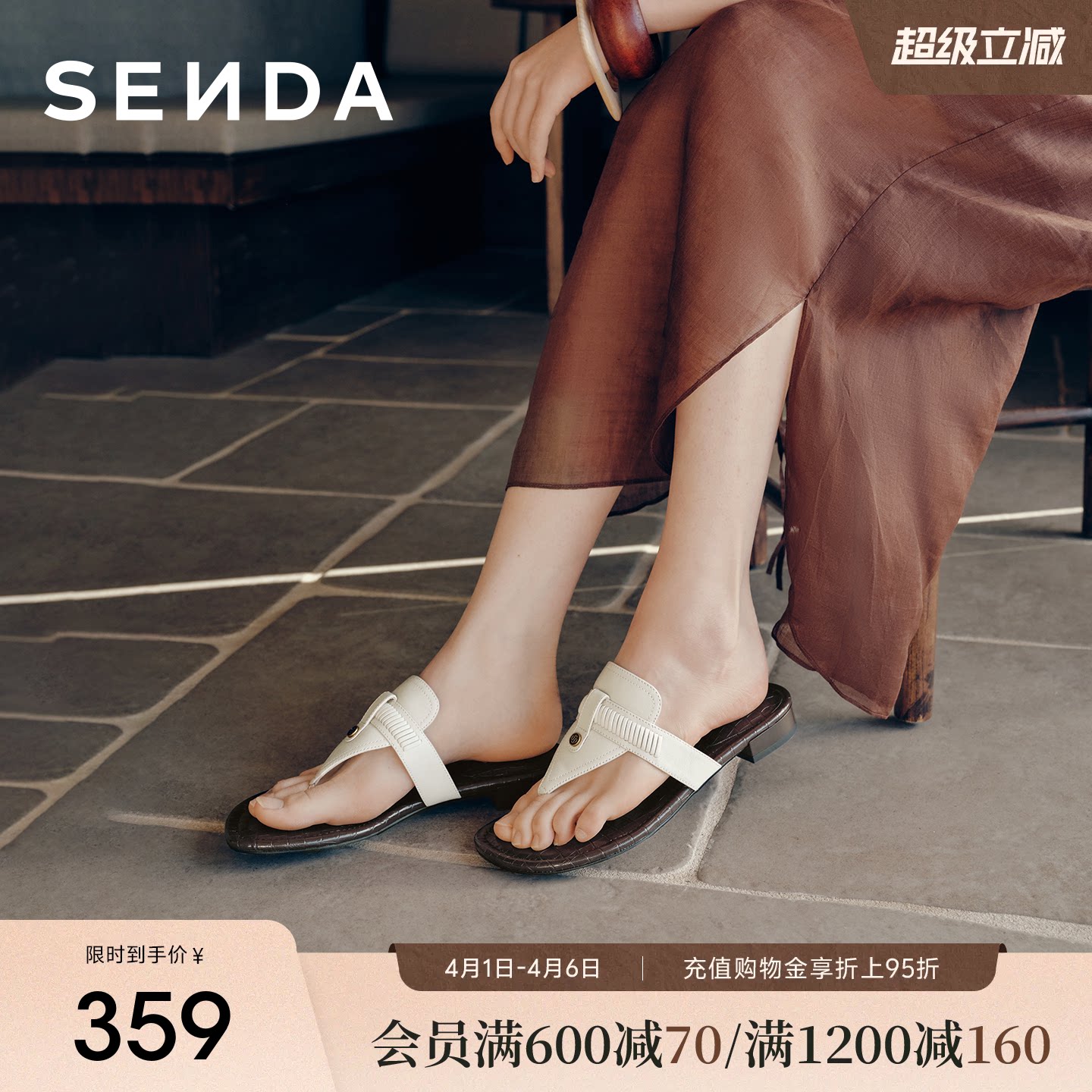 百思图2026夏季新款商场同款时尚复古休闲女拖鞋ZHT89BT6