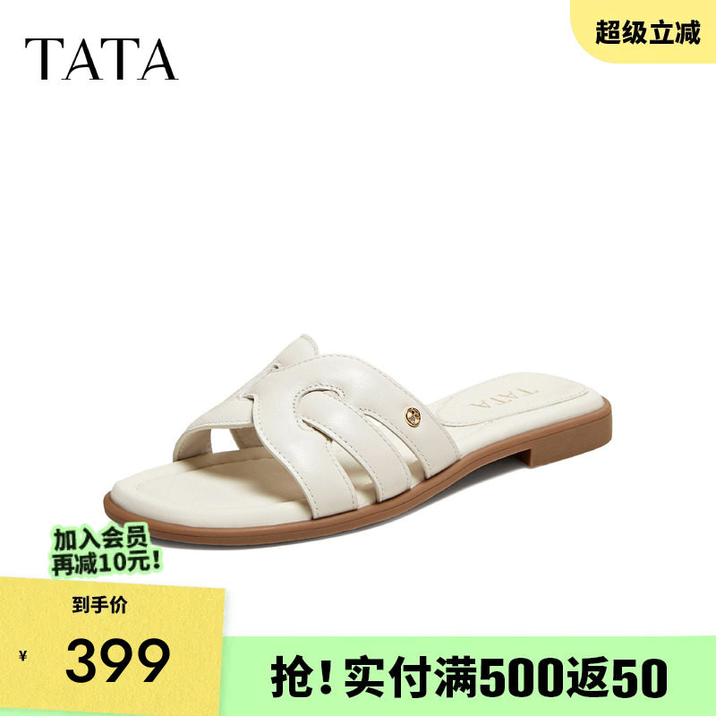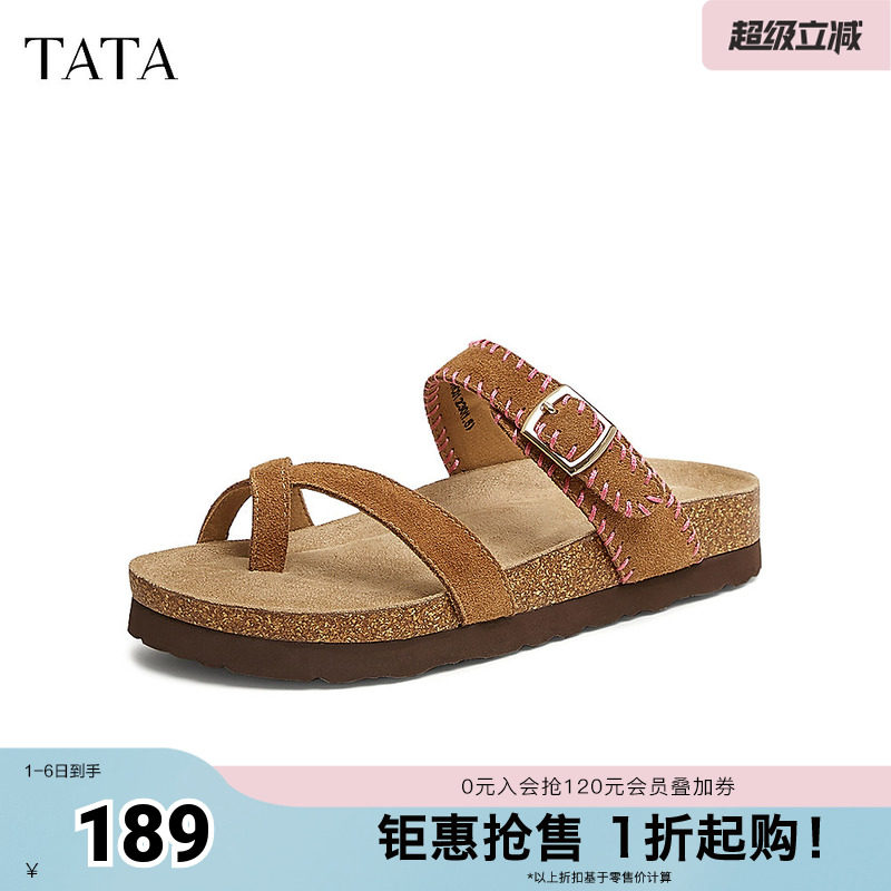 TATA他她复古厚底拖鞋女鞋休闲一字沙滩凉鞋春季新款CWC01BT5奥莱