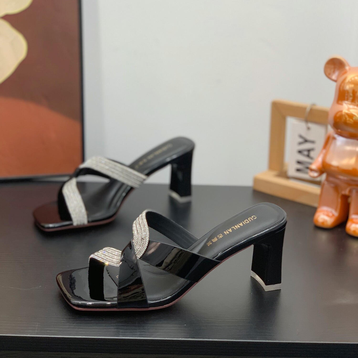仙女风7CM粗跟凉拖鞋小个子女2026夏季新款时尚外穿一字带高跟鞋