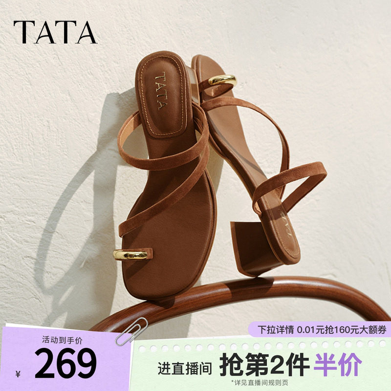 TATA他她高跟一字带凉拖鞋女鞋法式气质凉鞋2025夏季新款XPS01BT5