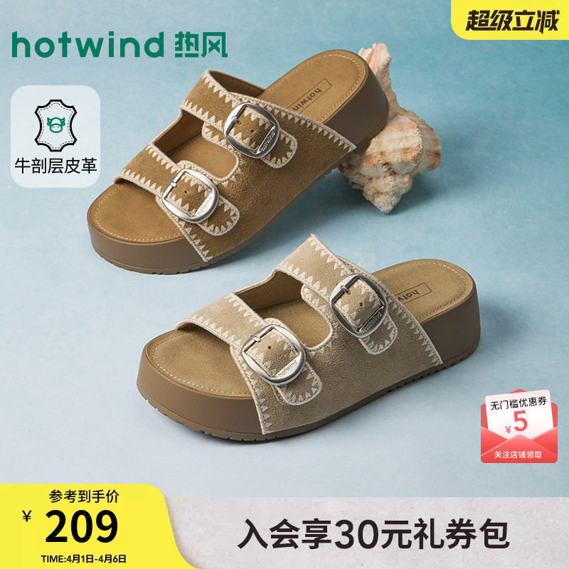 【商城同款】热风厚底勃肯拖鞋女26夏新款休闲一字拖外穿凉拖