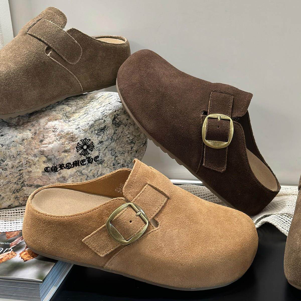 5CM包头磨砂皮勃肯拖鞋女2025新款百搭透气休闲包头半拖女