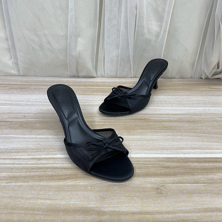 外贸原单女鞋新款时尚圆头纯色蝴蝶结细跟气质百搭拖鞋时装凉鞋