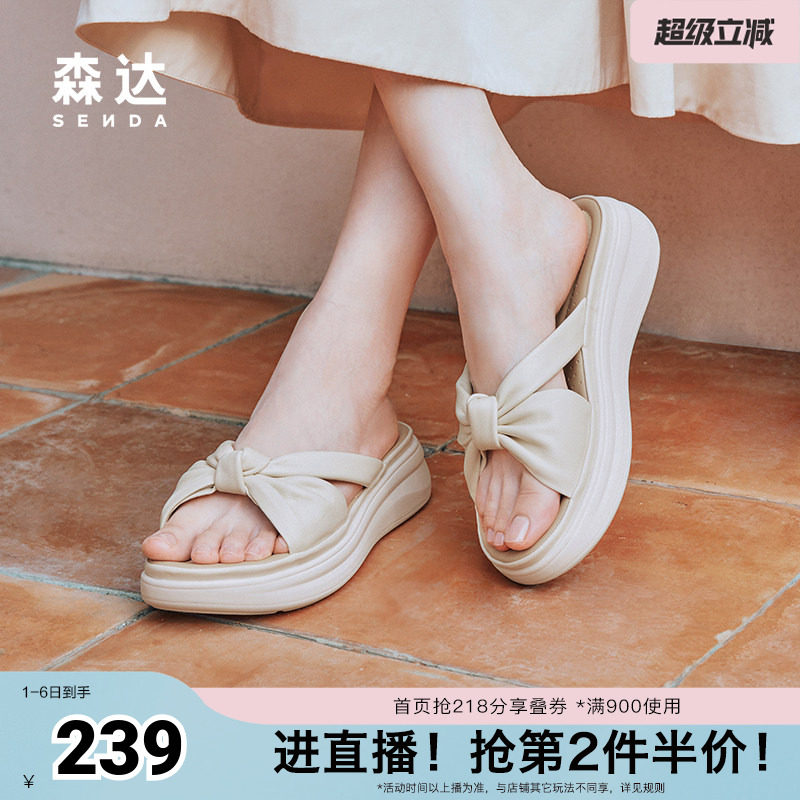 森达凉拖鞋女夏商场同款鞋子外穿厚底休闲拖鞋4RO39BT4