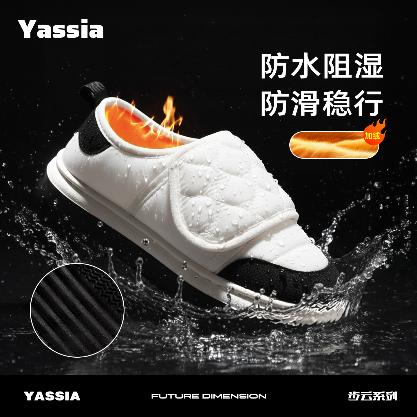亚束棉鞋男士外穿防水厚底加绒保暖棉拖鞋女增高居家室内棉拖冬季