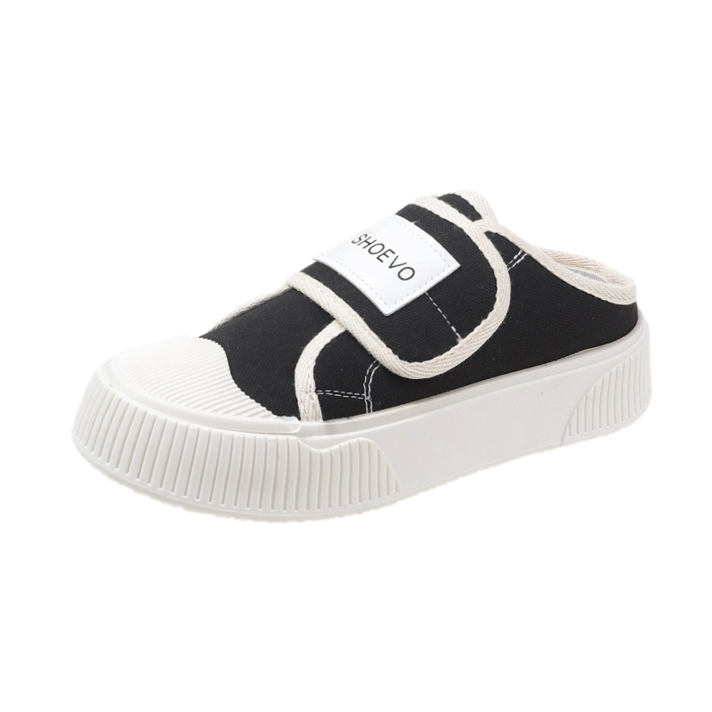 速发头半拖鞋2024年春季新款厚底外穿懒人无后跟魔术贴小白鞋