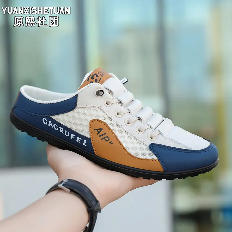 原熙社团劲爆潮鞋成功男人驾车鞋男士夏季半拖鞋网面懒人包头拖鞋