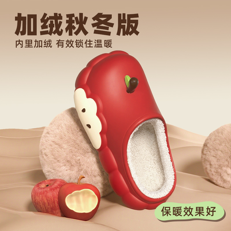 棉拖鞋女款冬季2025新款红苹果拖鞋加绒保暖室内防滑厚底外穿棉鞋