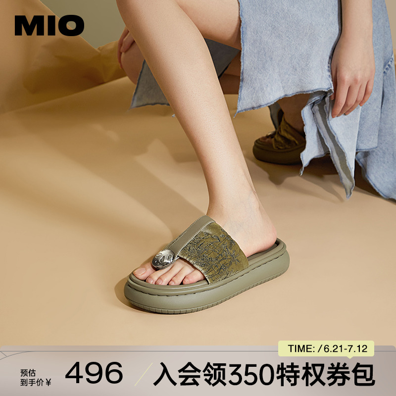 MIO复古新韵米奥夏季拖鞋夹趾拖鞋国风绒感厚底人字拖M243131421