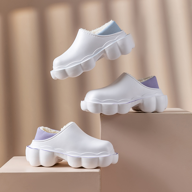 厚底花边款棉拖鞋踩屎感棉拖鞋女冬季居家情侣加绒保暖防滑防水