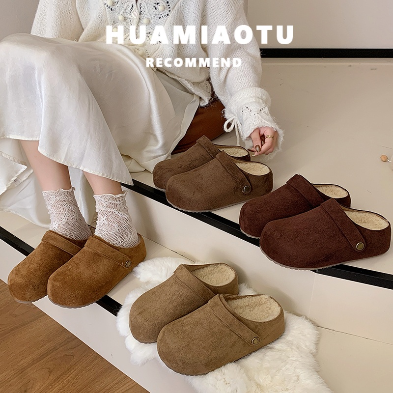 加绒勃肯鞋女两外穿2025秋冬新款不累脚巨好看的超火厚底半拖鞋子