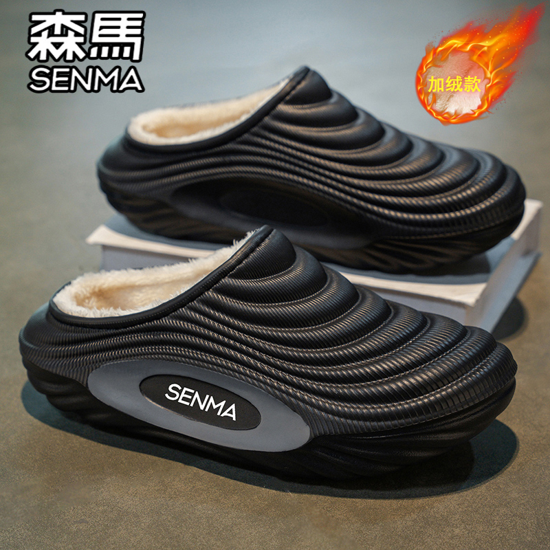 森马包头拖鞋男款2025新款冬季居家室内毛绒加厚保暖防滑包跟棉鞋