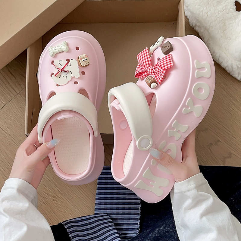 可爱软萌踩屎感厚底防滑EVA洞洞鞋女款夏季外穿增高防滑包头拖鞋