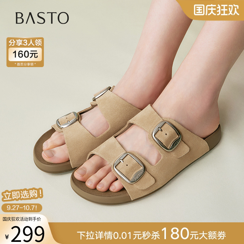 百思图2025夏季商场新款厚底外穿休闲懒人勃肯鞋拖鞋女鞋BG737BH5