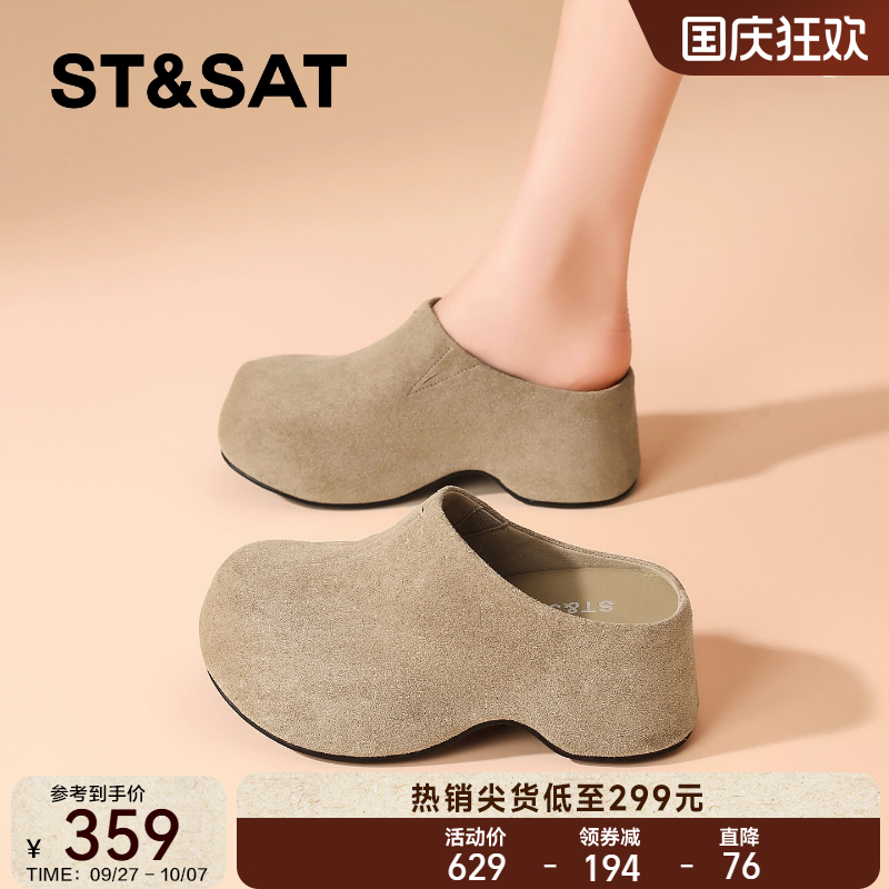 星期六松糕厚底包头半拖鞋女2025新款一脚蹬踩屎感复古休闲勃肯鞋