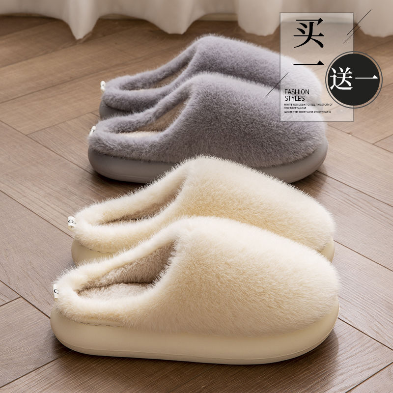 买一送一棉拖鞋女冬季新款室内家居踩屎感防滑保暖毛绒情侣棉拖男