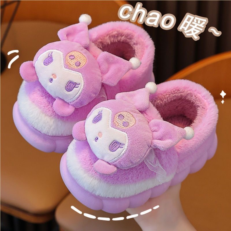 库洛米冬季儿童棉拖鞋男女童可爱包跟防滑室内宝宝居家毛毛拖鞋