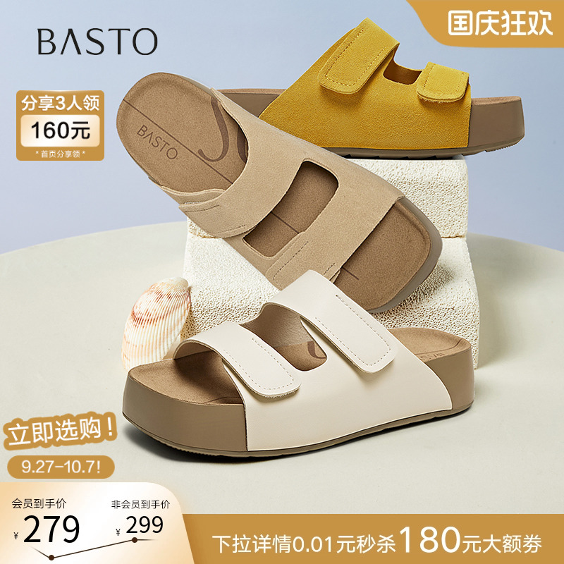 百思图25夏商场新款休闲勃肯鞋一脚蹬厚底外穿女拖鞋凉鞋B9312BT5