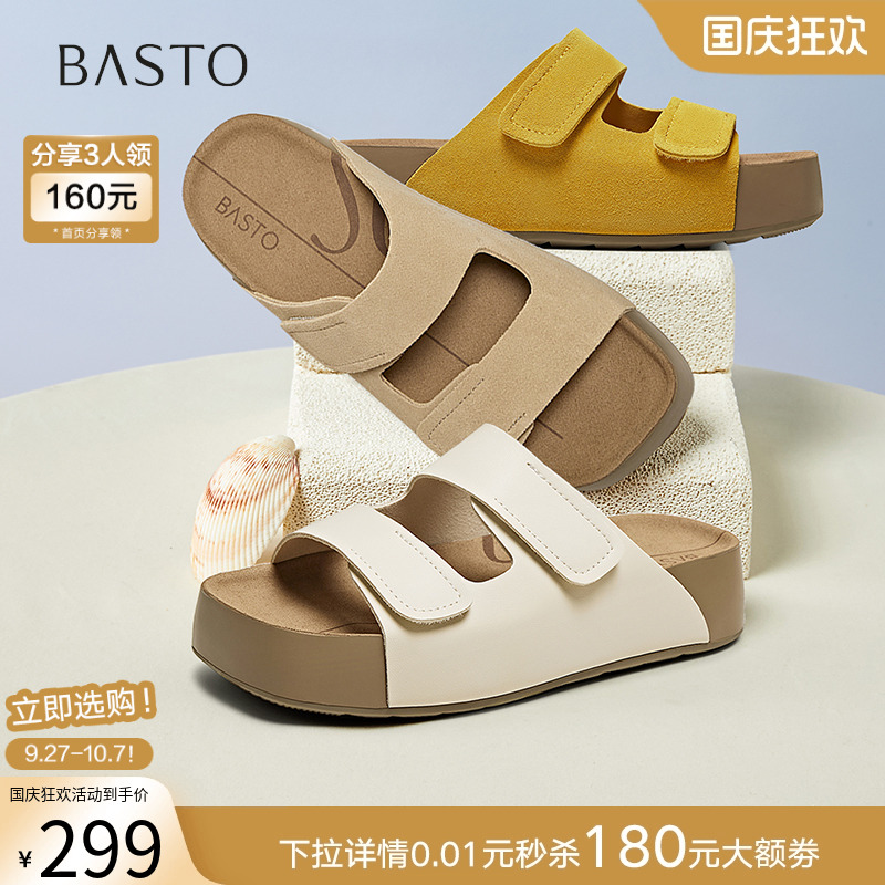 百思图25夏商场新款休闲勃肯鞋一脚蹬厚底外穿女拖鞋凉鞋B9312BT5