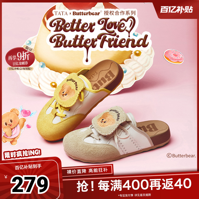 TATA他她黄油小熊联名厚底勃肯鞋女外穿包头拖鞋2025新款4SZ01BH5