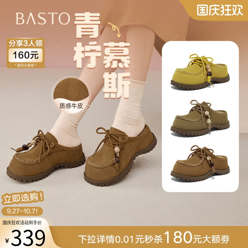 【青柠慕斯】百思图25秋新款懒人勃肯鞋一脚蹬厚底户外休闲女拖鞋