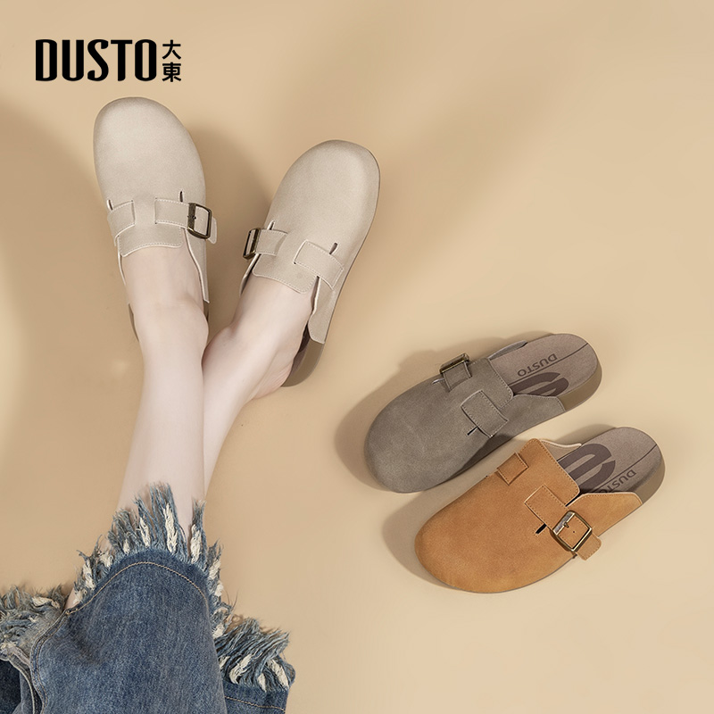 大东勃肯鞋女鞋2025秋季新款圆头一脚蹬平底女拖鞋包头博肯半拖鞋
