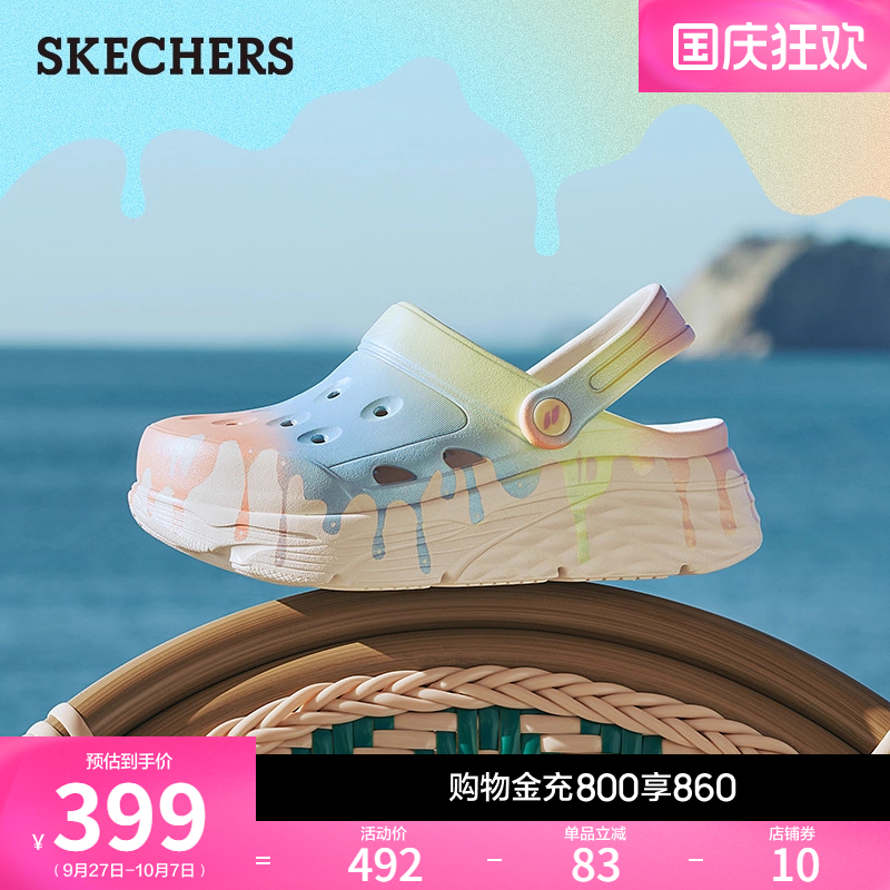 斯凯奇女鞋泼墨涂鸦洞洞鞋2025夏新款厚底增高包头拖鞋户外沙滩鞋