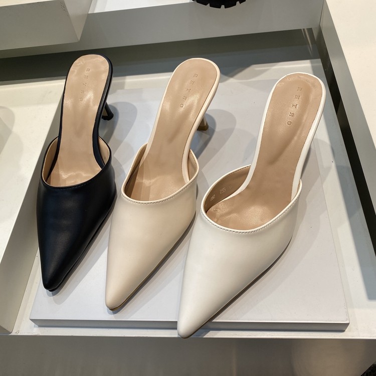 小池在首尔2025春季新款尖头细高跟复古个性简约女神包头半拖鞋潮