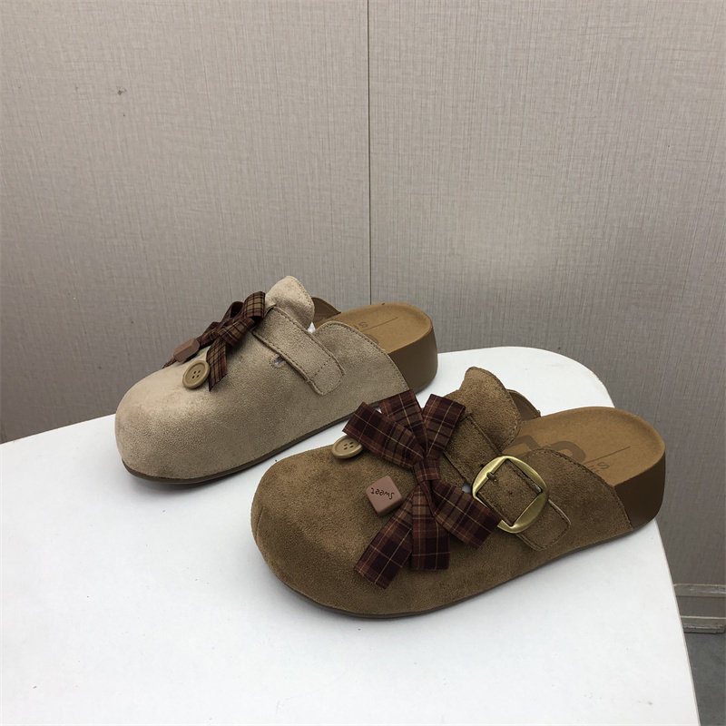 2026春季新款撤柜处理女鞋复古文艺百搭舒适厚底包头勃肯半拖鞋女