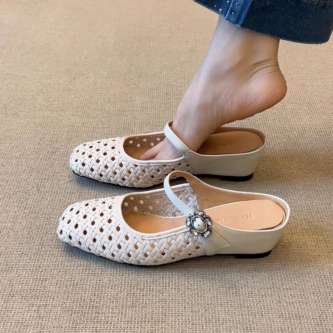 康莉包头镂空罗马鞋女真皮夏季新款牛皮猪笼鞋凉鞋半包拖鞋穆勒鞋