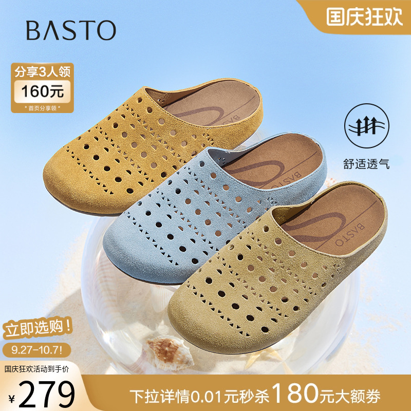 百思图2025夏季新款真皮懒人勃肯拖鞋洞洞鞋女包头拖鞋D3076BH5