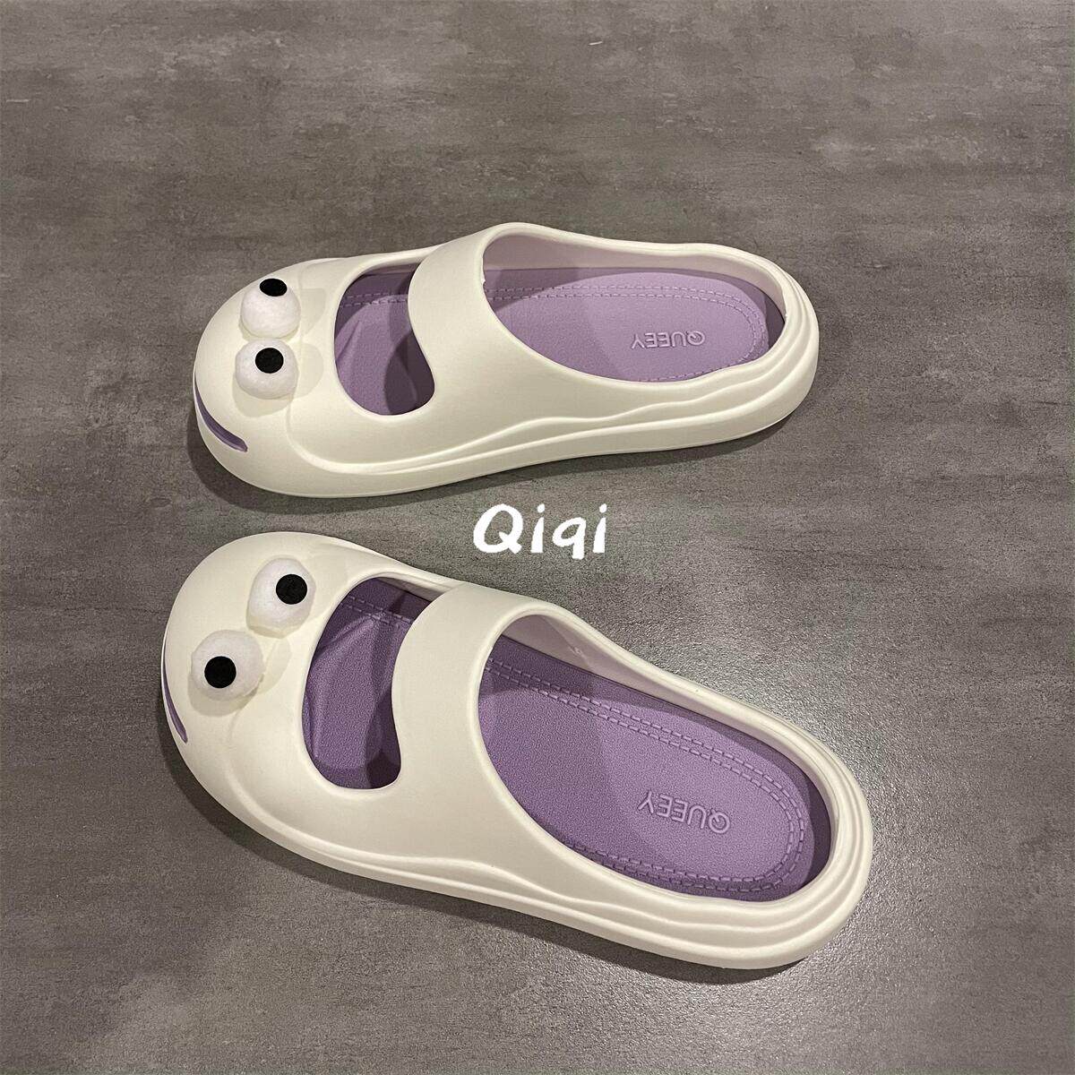 七七主人家 开口笑洞洞鞋外穿软底沙滩拖鞋女居家防滑凉拖鞋女鞋