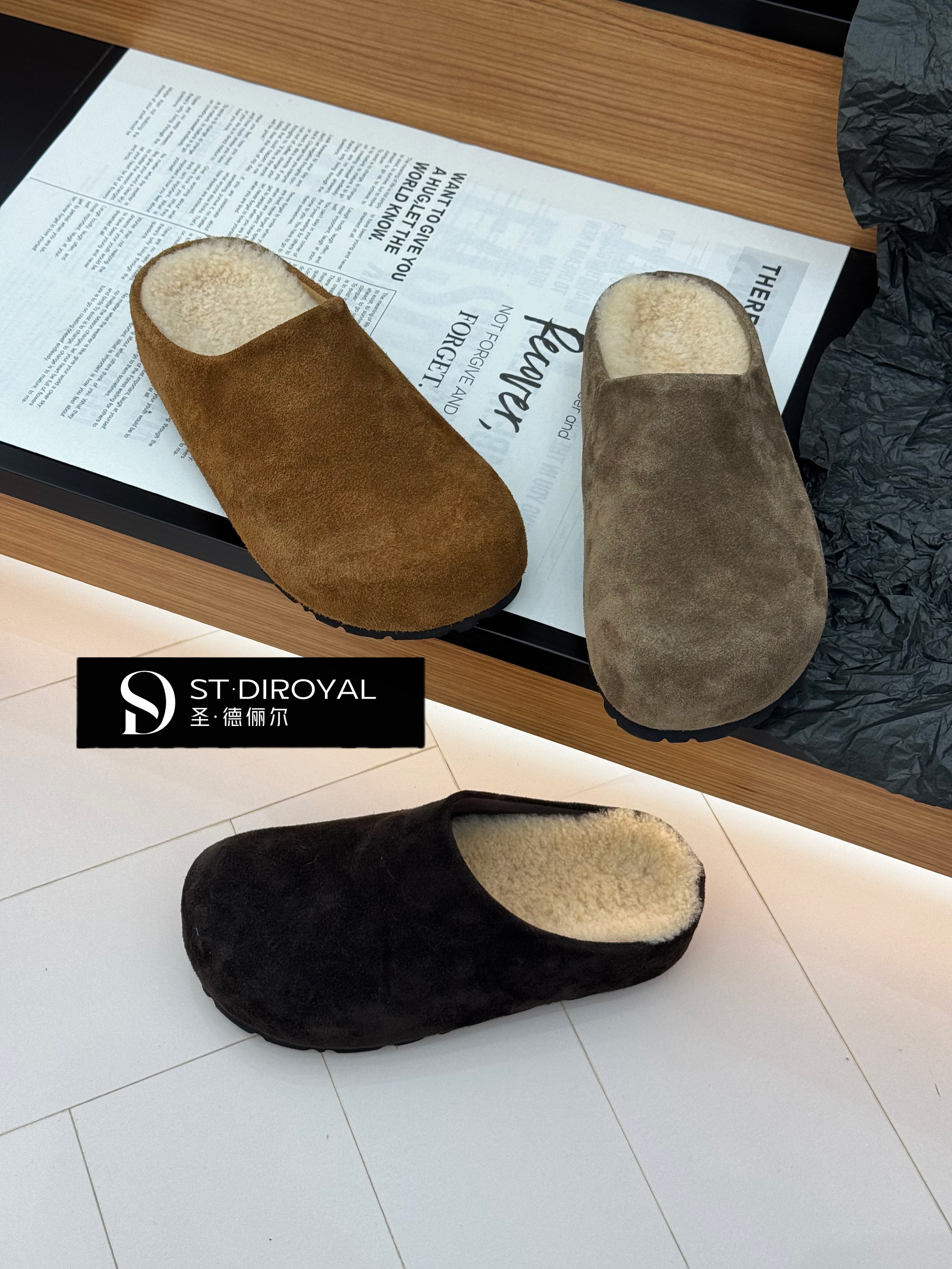 圣德俪尔勃肯拖欧洲站2025秋季新款真皮牛反绒穆勒鞋懒人包头拖鞋
