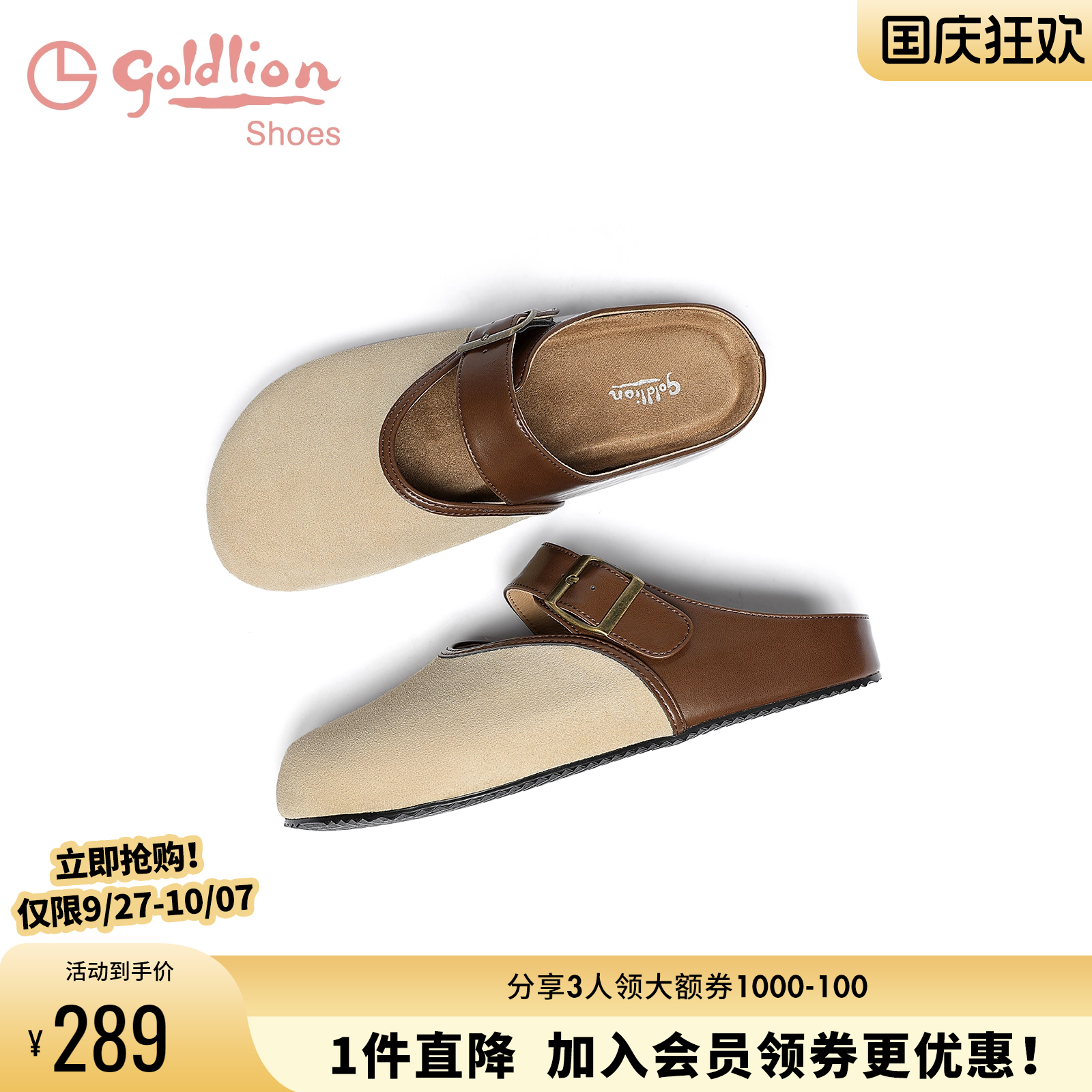 骆驼女鞋2025秋季新款休闲包头款勃肯鞋女鞋平底圆头单鞋外穿拖鞋