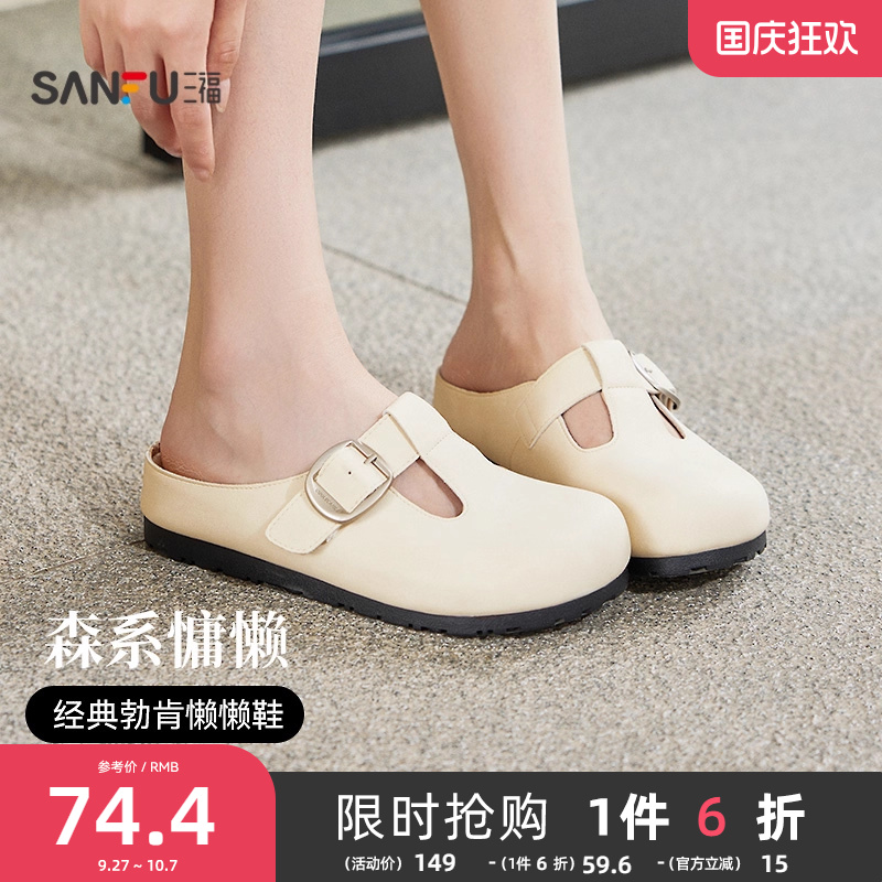 三福凉拖鞋夏季韩系休闲质感五金扣宽松包头勃肯鞋女鞋842232