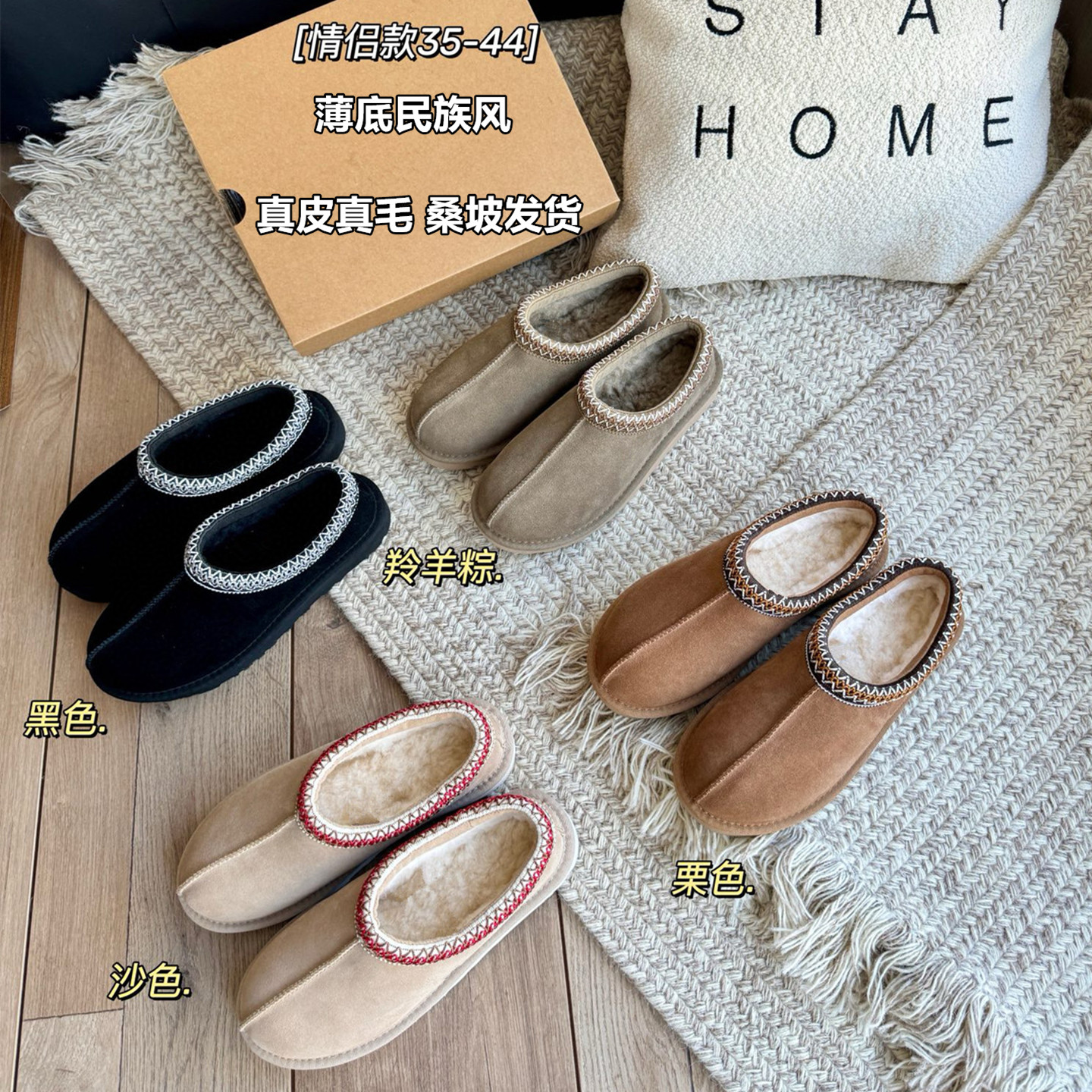 UGG女拖鞋冬休闲鞋羊毛保暖翻毛皮编织花边缝线 TASMAN 5955