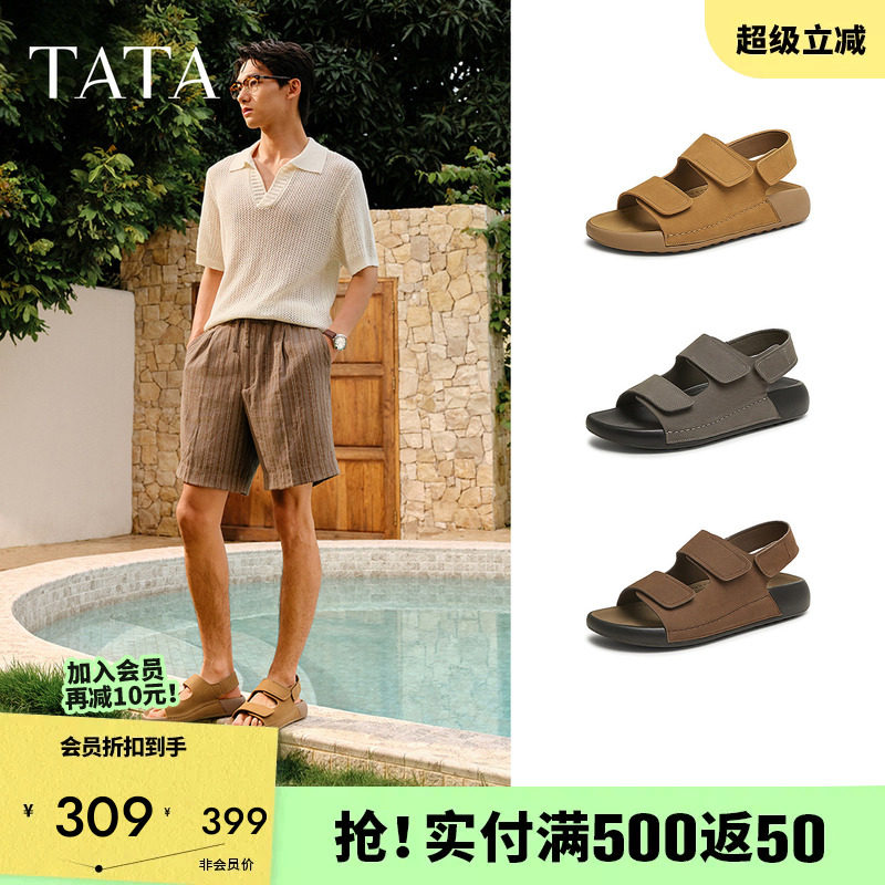 TATA他她复古厚底凉鞋真皮男鞋休闲运动沙滩凉拖鞋爸爸鞋子AAD01