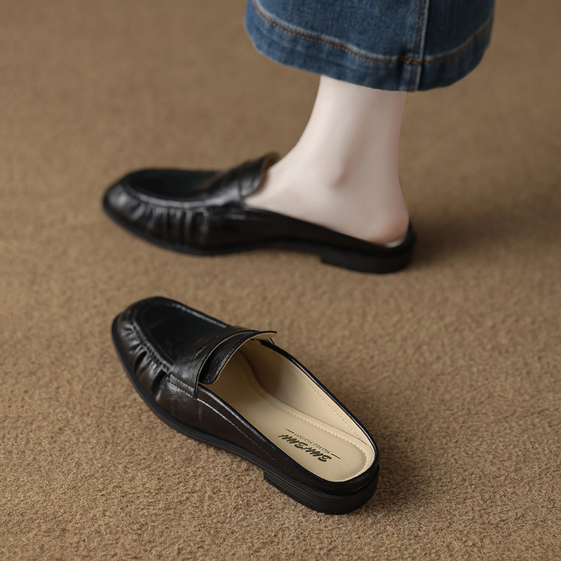 绝美包头拖鞋女夏外穿2026春新款黑色小皮鞋一脚蹬半拖高级穆勒鞋