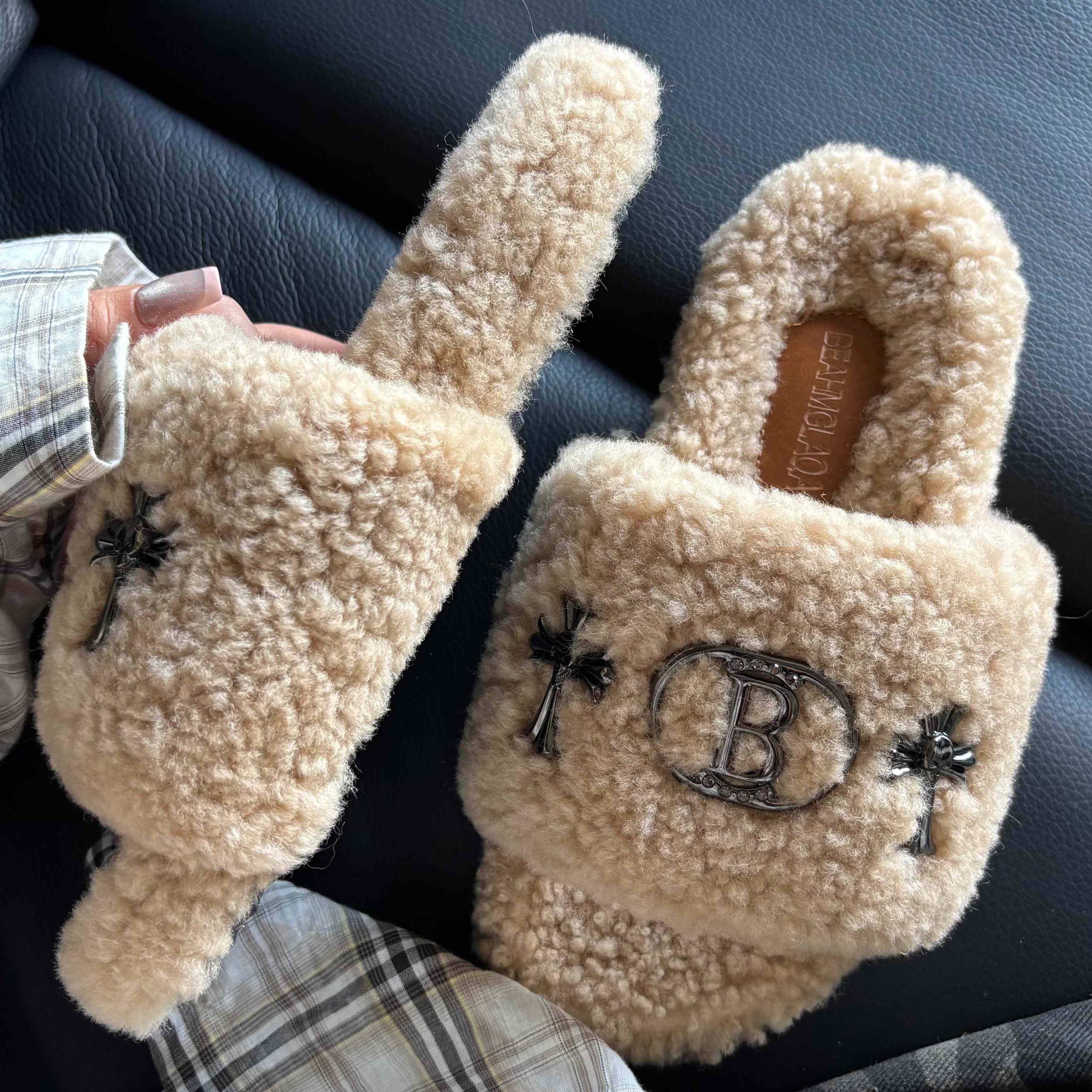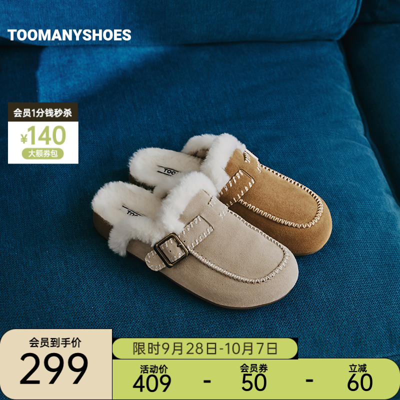 Toomanyshoes毛毛鞋25秋冬新款奶油溢出厚底真皮勃肯半拖鞋女外穿