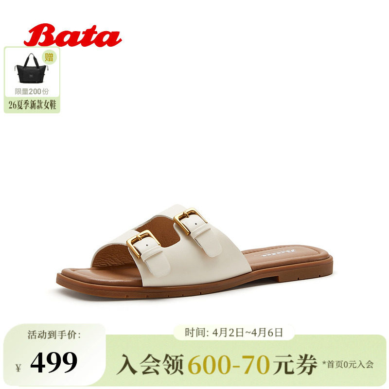 Bata一字带拖鞋女2026夏季商场新款时尚扣带方头软底拖鞋ARP40BT6