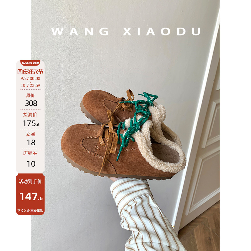 【王小毒】雪顶摩卡○鸳鸯鞋带保暖毛毛鞋女冬季新款休闲拖鞋
