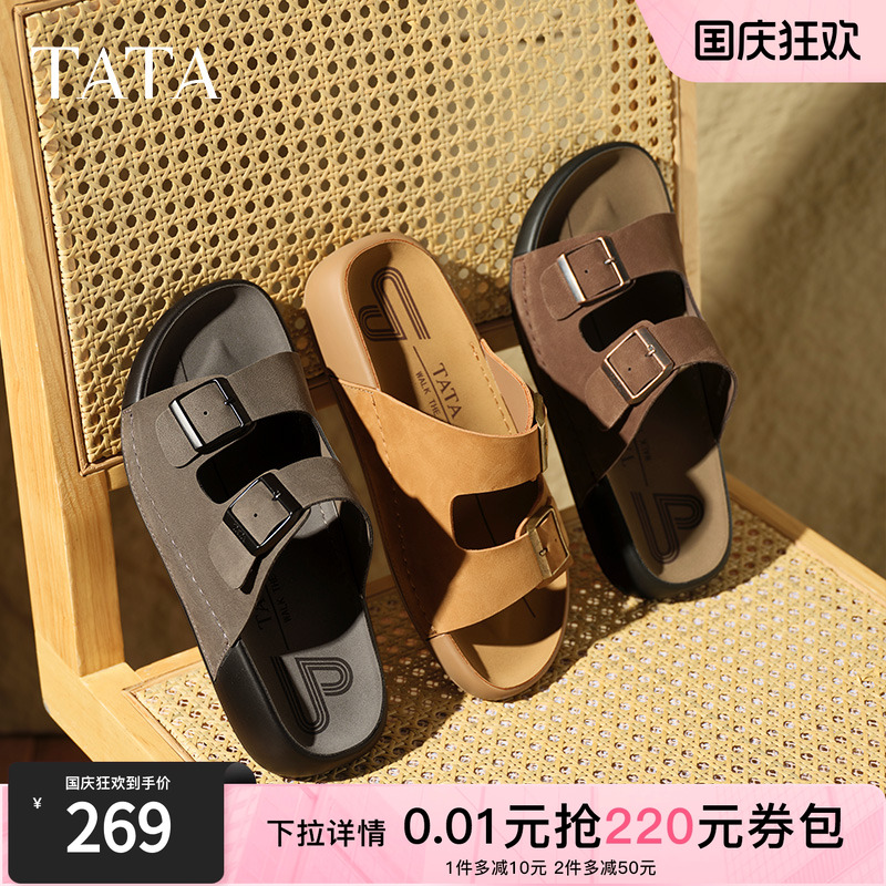 TATA他她复古休闲勃肯拖鞋男鞋厚底外穿凉鞋2025新款鞋子AAD02BT5