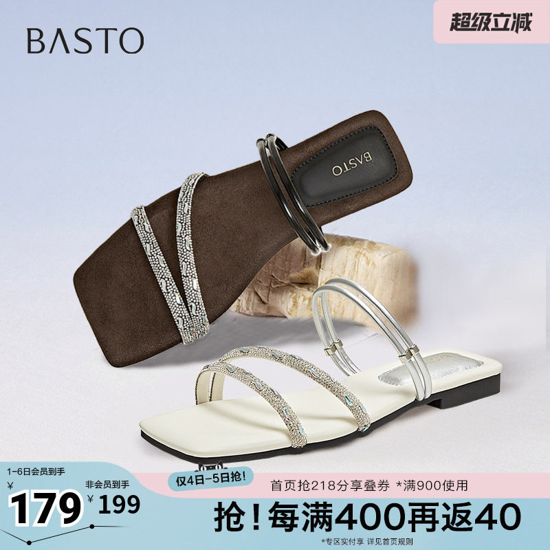 百思图夏季新款商场同款简约百搭条带时装拖平跟女拖鞋E5071BT5