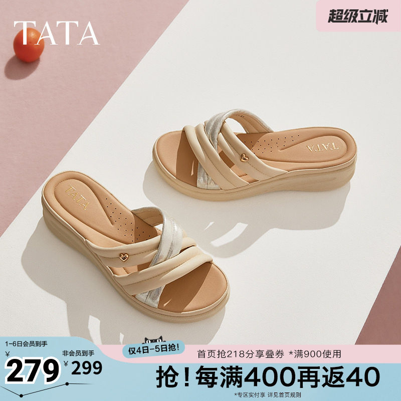 TATA/他她春商场同款简约百搭女休闲拖鞋新款奥莱