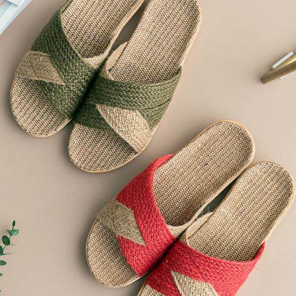 亚麻拖鞋编织草鞋女纯麻草编日本居家四季静音室内复古男麻质凉托