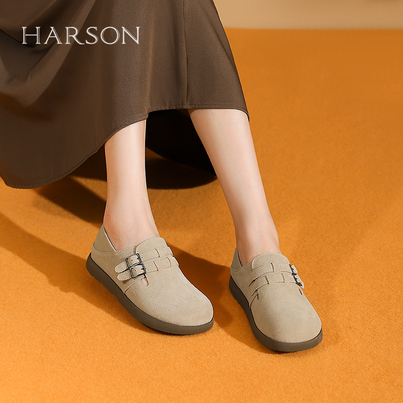 哈森复古厚底勃肯鞋女休闲单鞋两穿半拖鞋春秋季新款HWL240137
