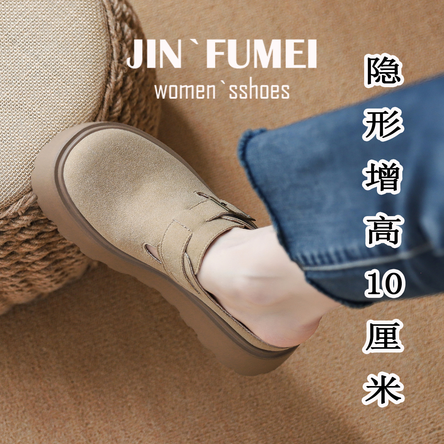 2025新款厚底勃肯鞋女复古慵懒感一脚蹬包头半拖鞋外穿内增高单鞋
