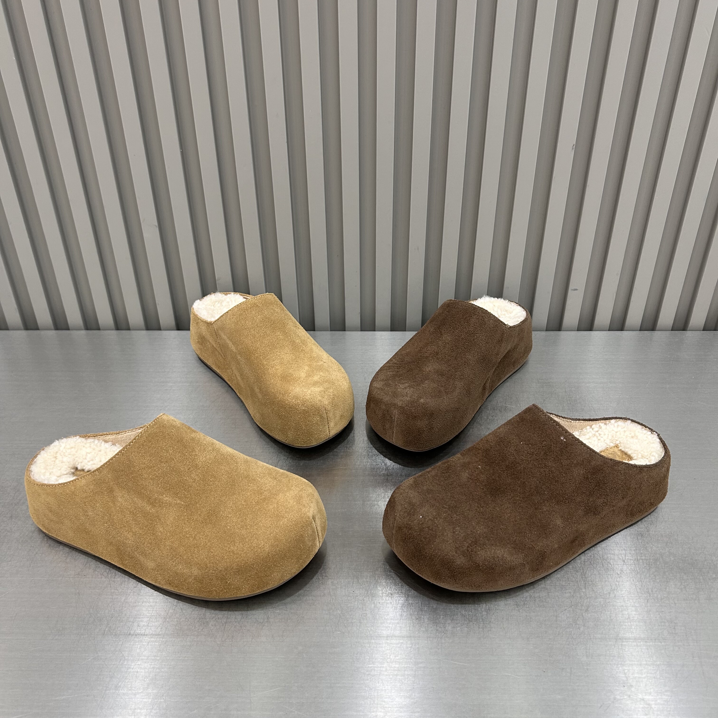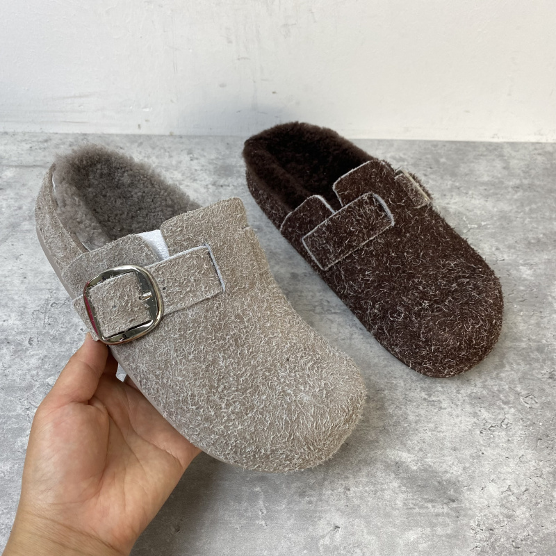 2025秋季新款磨砂皮厚底5厘米加绒勃肯拖鞋显脚小时尚休闲羊毛垫